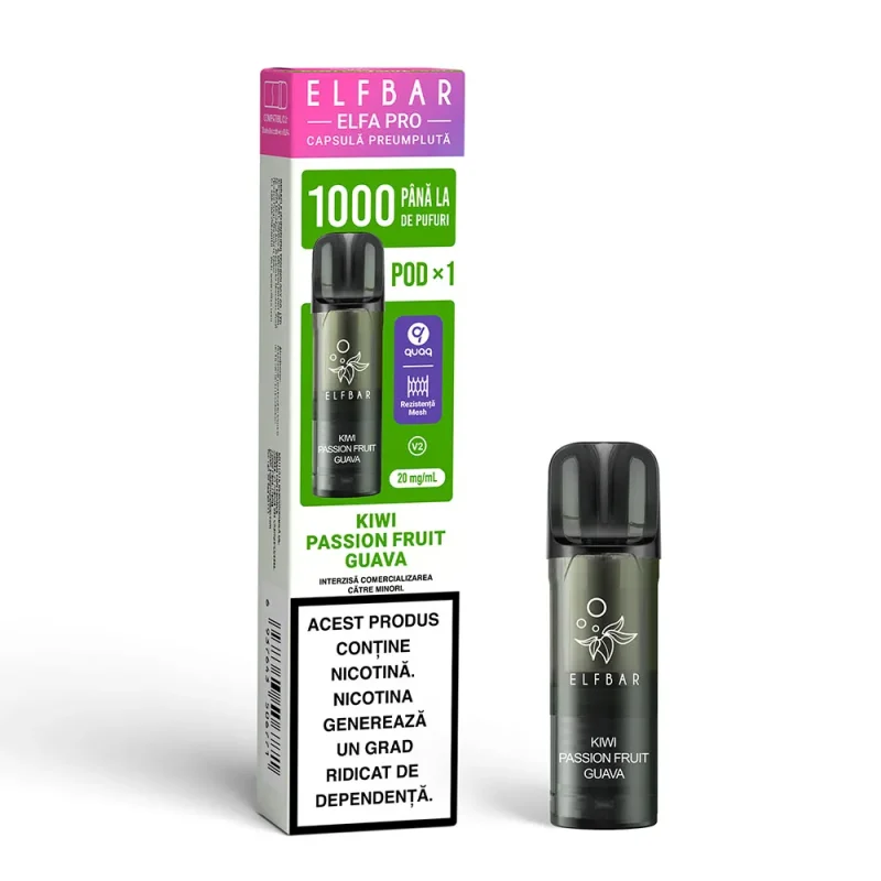 Rezerva ELFBAR ELFA PRO V2 – Kiwi Passion Fruit Guava – Capsule Preumplute de Unică Folosință – Specificațiile Tehnice: