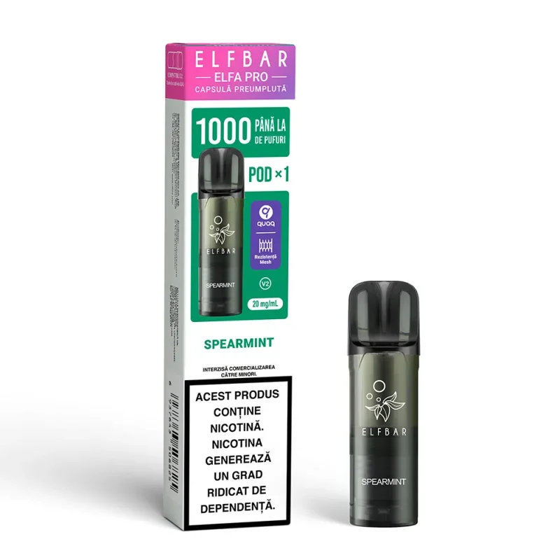 Rezerva ELFBAR ELFA PRO V2 – Spearmint – Capsule Preumplute de Unică Folosință – Specificațiile Tehnice: