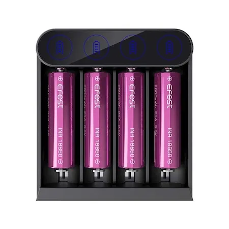 - Compatibil cu acumulatori de tipul Li-ion (10440, 14500, 14650, 16340, 16650, 17650, 17670, 17350, 18350, 18490, 18500, 18650, 26500, 26650).