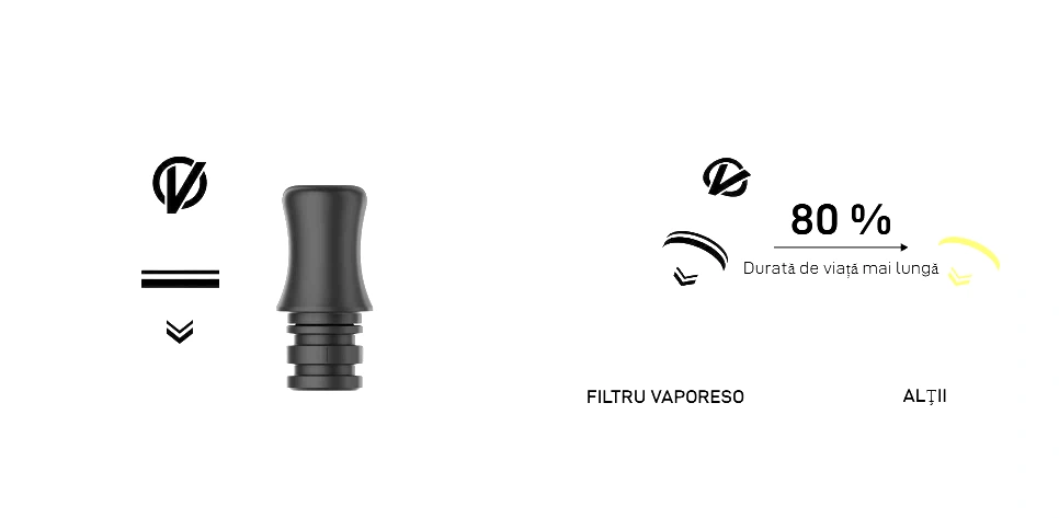 - Drip tip: Opțional cu filtru din bumbac inclus pentru experiență tip țigară clasică
