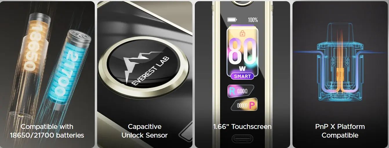 | Putere reglabilă până la 80W pentru vapori denși | Consumul bateriei este mai mare la putere maximă |